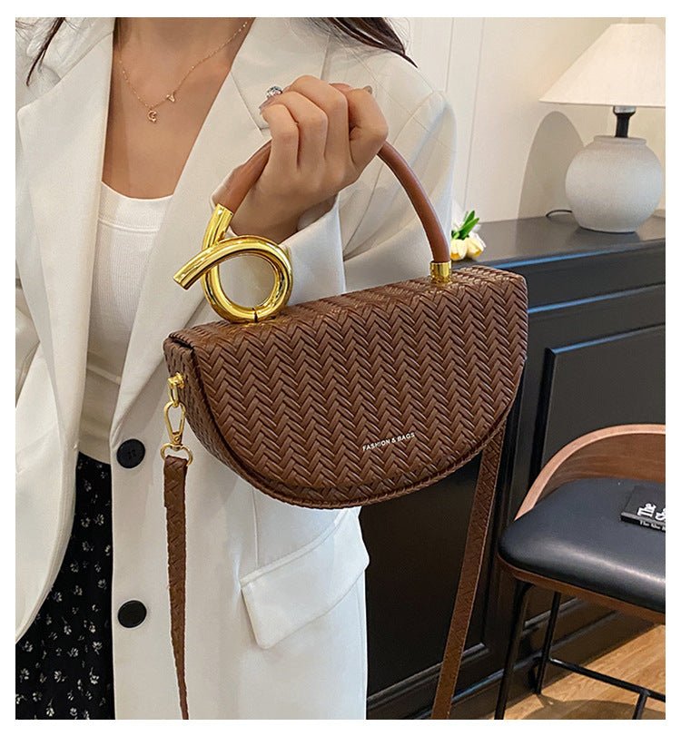 Zarif dokusu ve dikkat çekici ayrıntılarla öne çıkan bu kadın el çantası , modern stilinize lüks bir dokunuş katıyor. Altın renkli halka sap detayı ve yarım biçimindeki kapsamıyla hem günlük kullanımda hem de özel davetlerde şıklığınızı tamamlar.