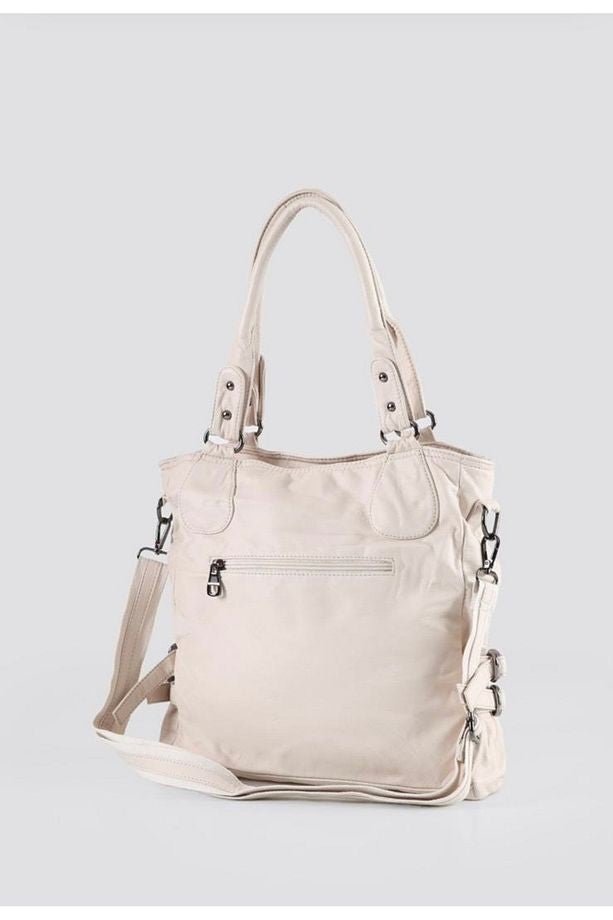 Scarpax Modern Yıkama Deri Bej Cilt Omuz ve Sırt çantası - Pratik ve Şık Tasarım