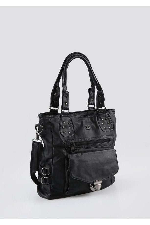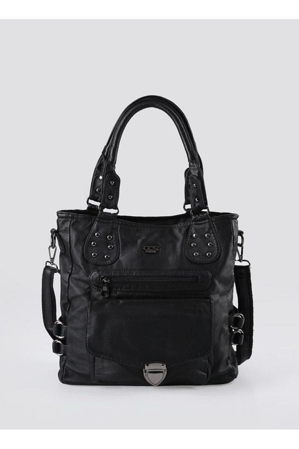 Scarpax Modern Siyah Cilt Omuz ve Sırt çantası - Yıkama Deri, Pratik ve Şık Tasarım