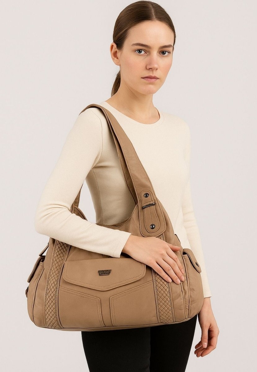 Scarpax Batti Vizon Cilt Kadın Omuz çantası - Yıkama Deri, Şık ve Fonksiyonel, 38x26x12 cm