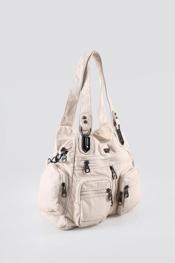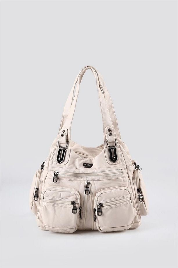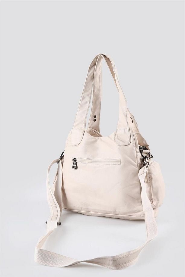 SCARPAX Kadın Yıkama Deri Omuz çantası Bej - Şık ve Geniş İç Hacim 28x23x12 cm