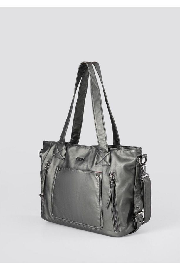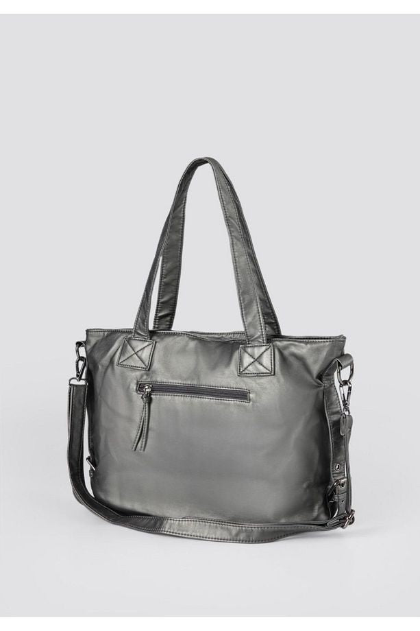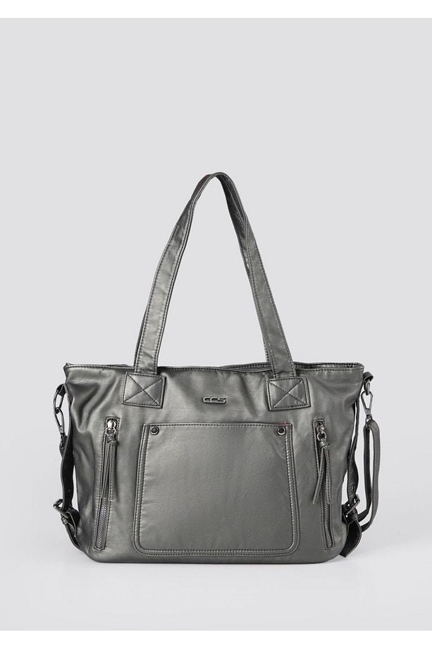 Scarpax Lonti Platin Cilt Kadın Omuz çantası - Yıkama Deri, 5 Cepli, 35x24x14 cm