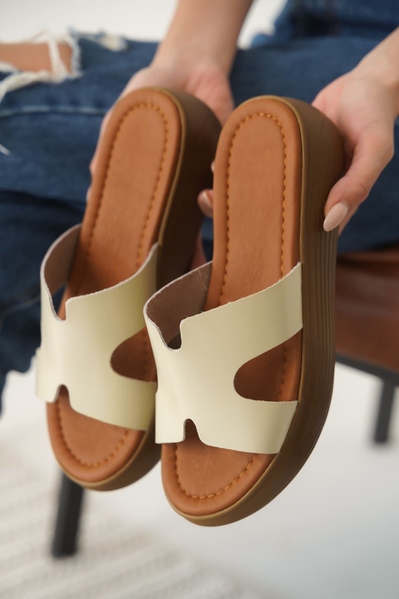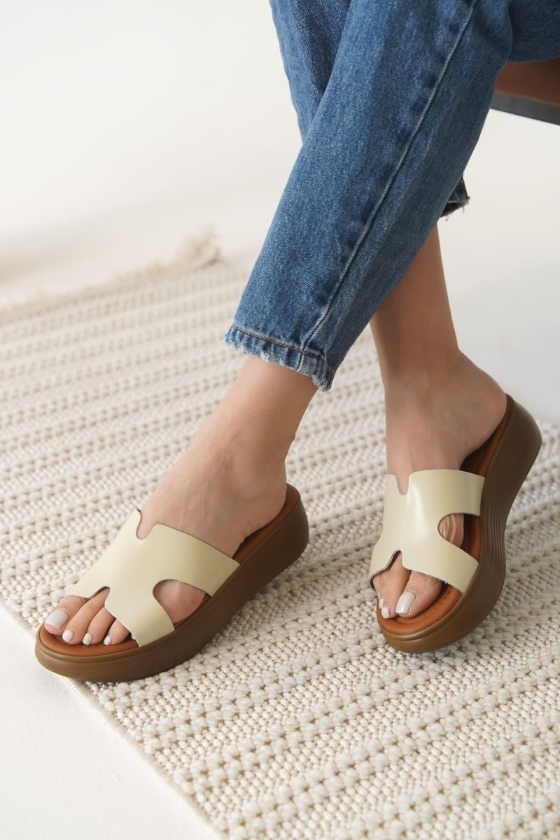 Scarpax Borlina Bej Hakiki Deri Terlik - Şık ve Rahat Günlük Ayakkabı