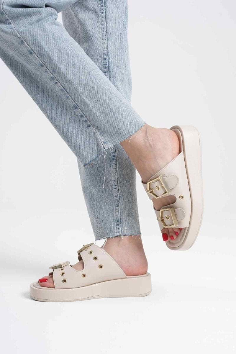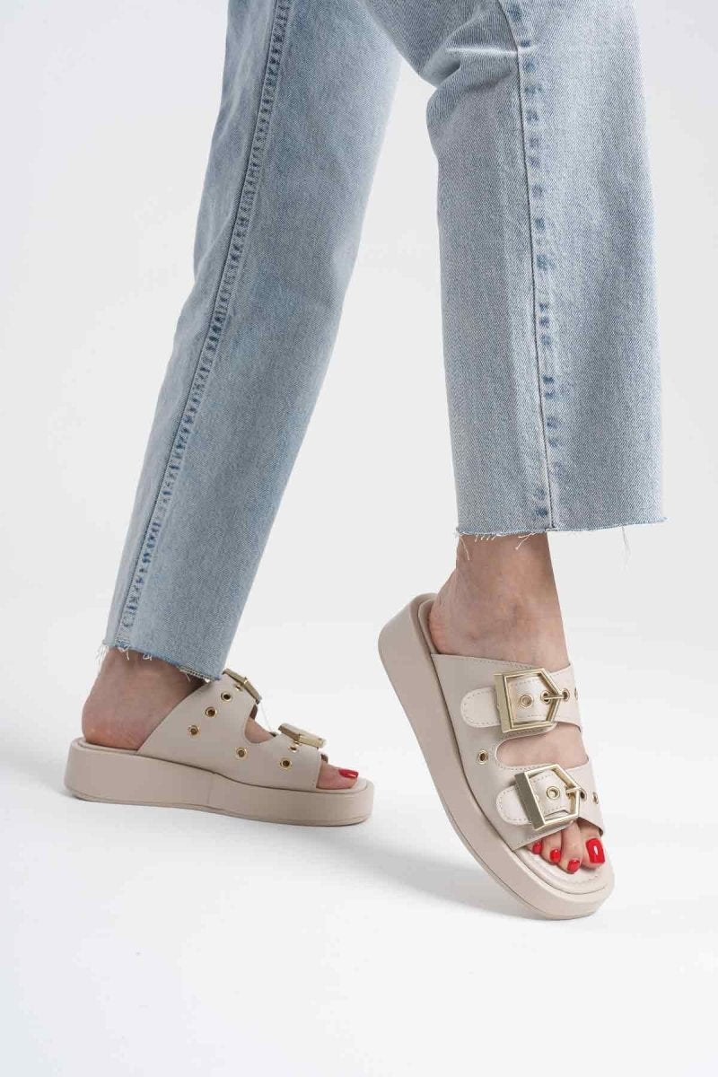 Scarpax Glos Bej Cilt Terlik - Şık ve Rahat Günlük Ayakkabı Seçeneği