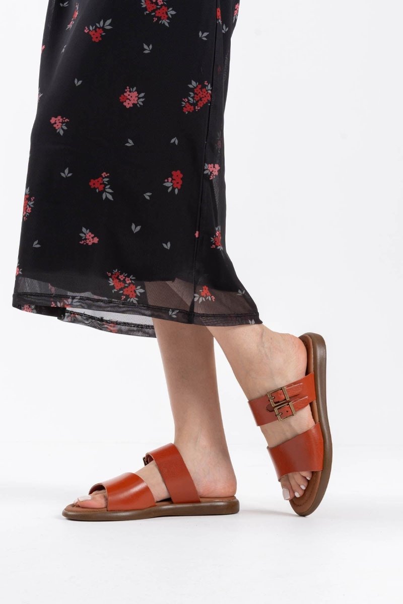 Scarpax Kares Kiremit Hakiki Deri Terlik - Şık ve Rahat Günlük Ayakkabı