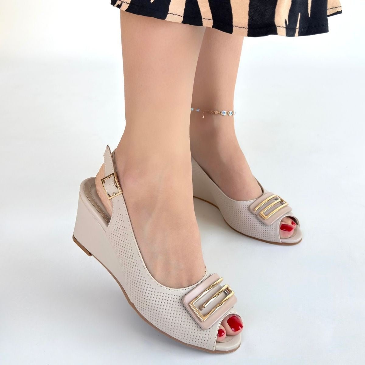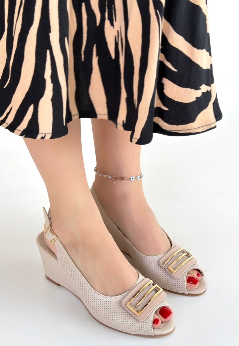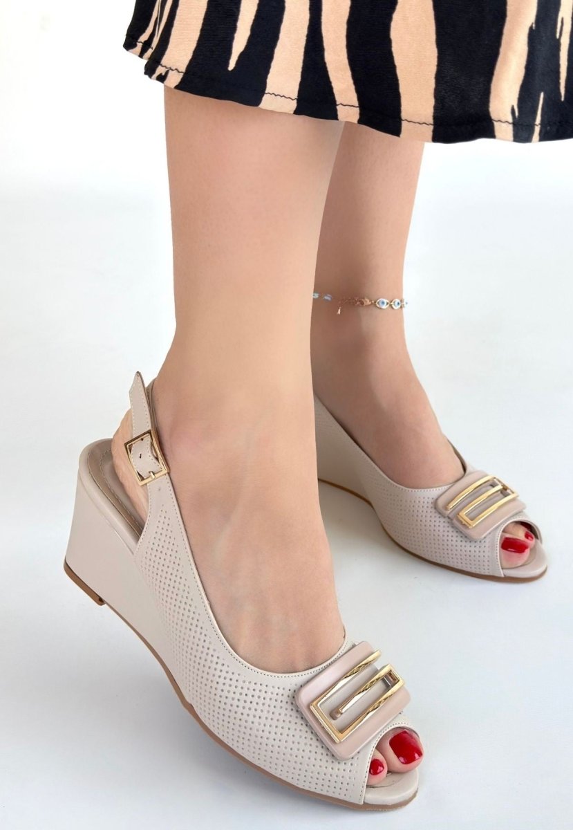SCARPAX Mamba Bej Cilt Dolgu Topuk Ayakkabı - 7 cm Yüksek Hakiki Materyal