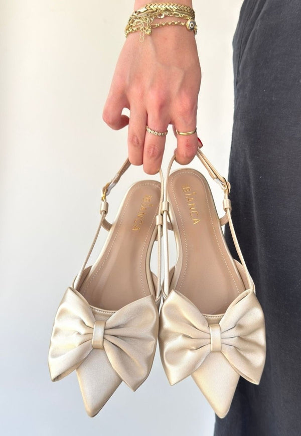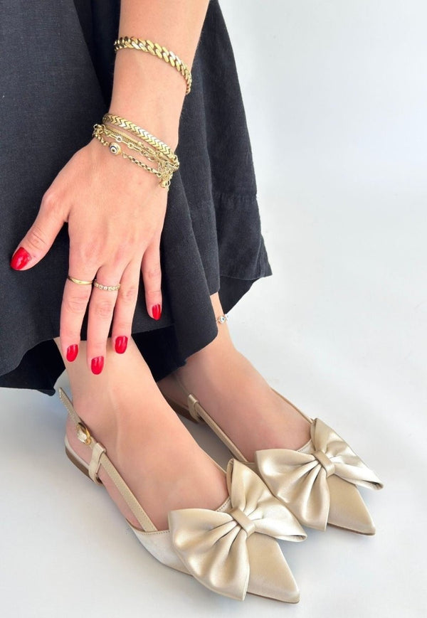 Scarpax Bej Saten Babet Ayakkabı - 1 cm Topuk, PVC Taban, Standart Kalıp