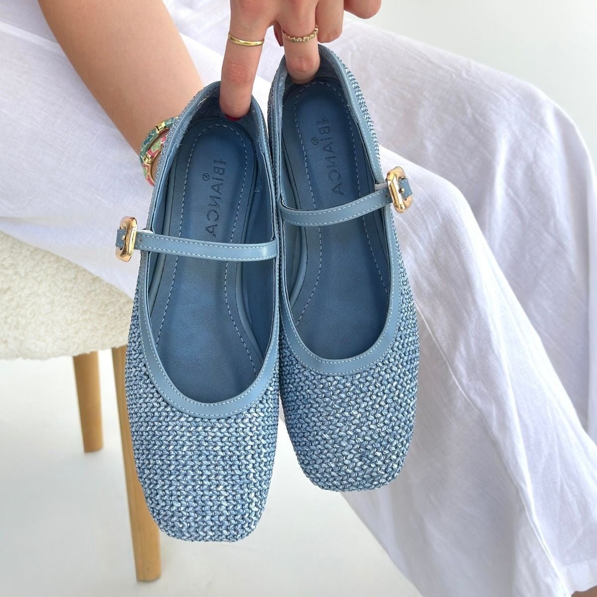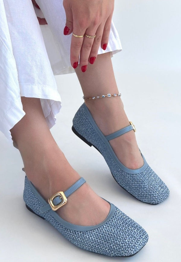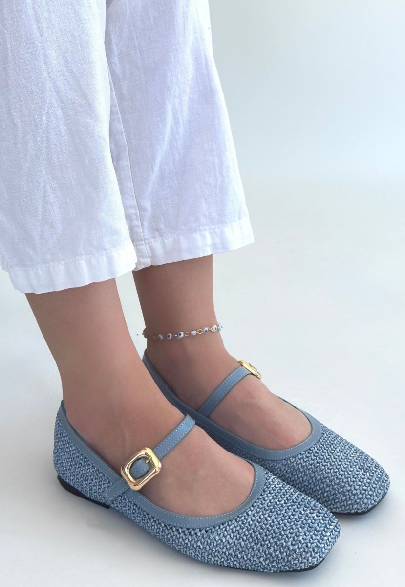 Bu ayakkabılar, taze bir görünüm için mavi renkte tasarlandı. Özenle seçilen cilt malzemesi, ayağınıza mükemmel uyum sağlarken, hasır dokuma detayı ile şıklığını artırıyor. Düz kemer tasarımı, her türlü kıyafetle uyum sağlar ve zarif bir görünüm sunar.
