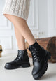 Scarpax Bria Siyah Cilt Bağcıklı Bot - Yandan Fermuarlı, 4 cm Topuklu, Rahat İç Astar