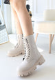 Scarpax Bej Cilt Yandan Fermuarlı, Bağcıklı, Topuklu Bot - 3 Cm Topuk Boyu