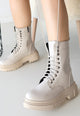 Scarpax Siyah Cilt Bağcıklı Bot, 3 Cm Topuk, Fermuarlı ve Lastikli Detaylar