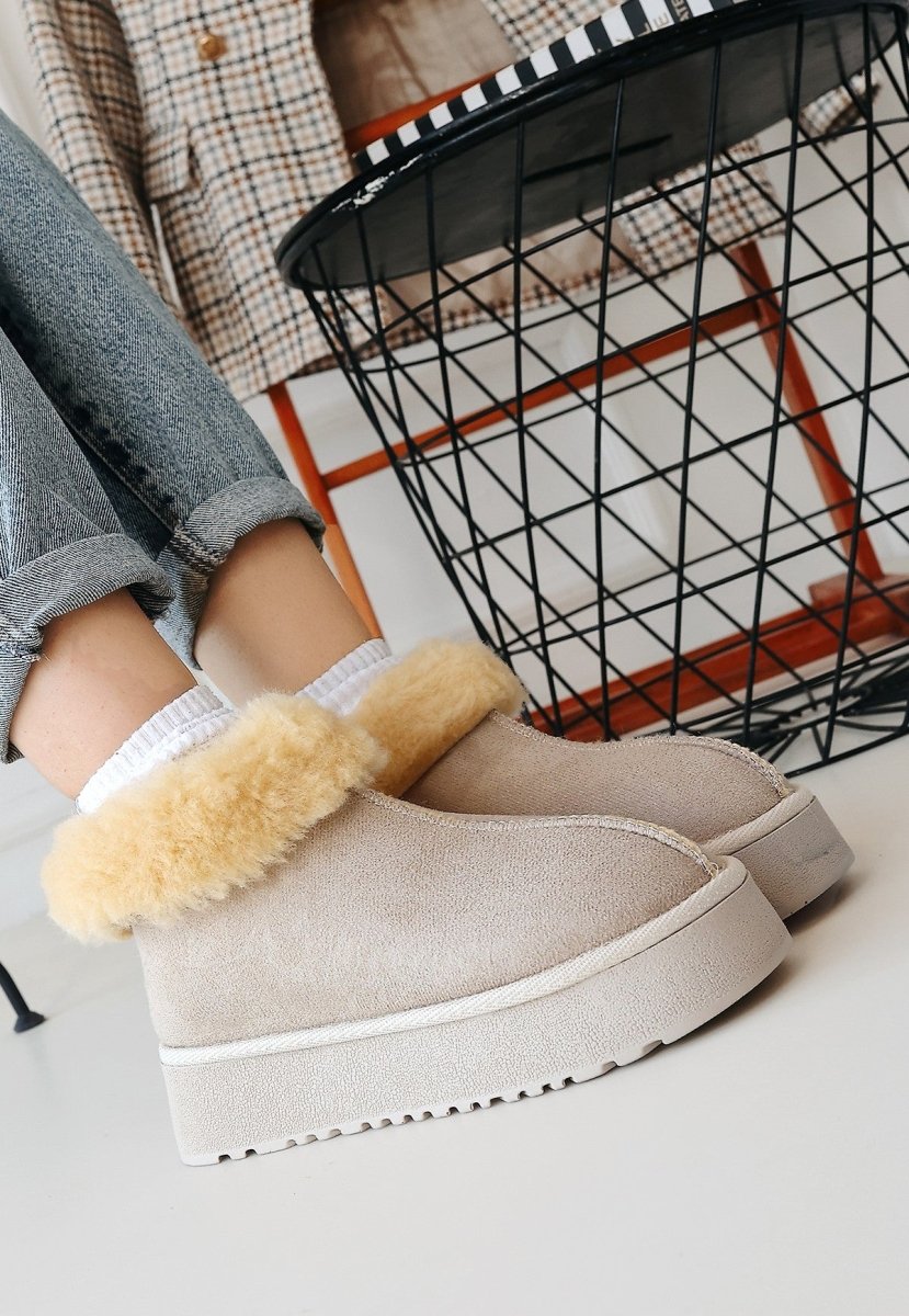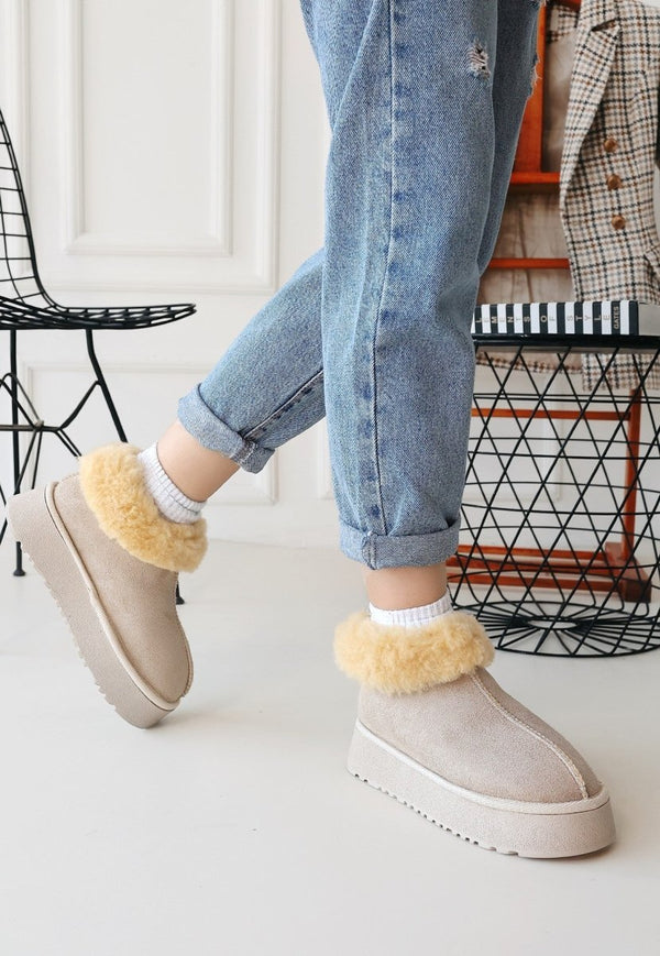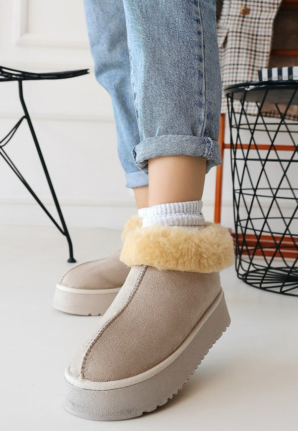 Soğuk havalarda dahi konforlu bir kullanım sunan içkürklü yapısı, ayaklarınızın sıcak kalmasını sağlar. 4 cm'lik topuk yüksekliği, hem zarif görünmenizi sağlar hem de yürüyüş konforunuzu artırır. Poli tabanı, zeminle temasınızı güçlendirir ve kaymayı önleyerek ekstra bir güven sağlar.