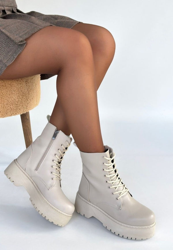 Scarpax Jonni Bej Cilt Bağcıklı Bot