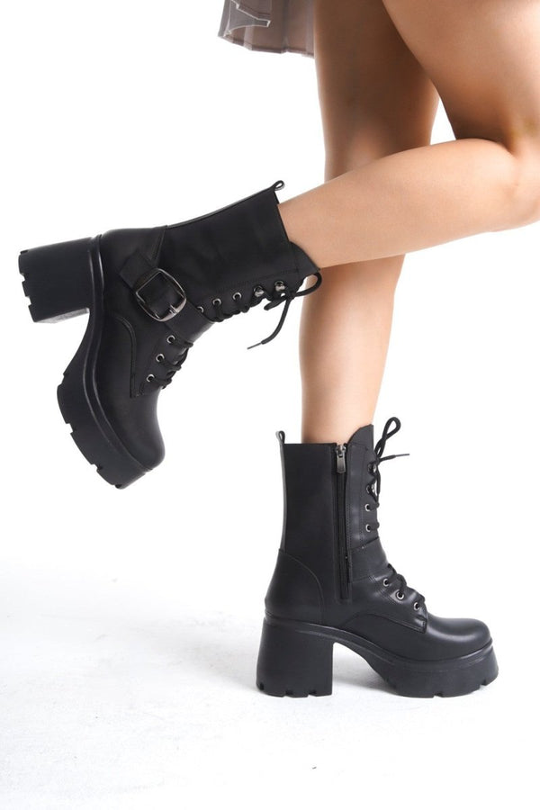 Scarpax Linma Siyah Cilt Bağcıklı Topuklu Bot
