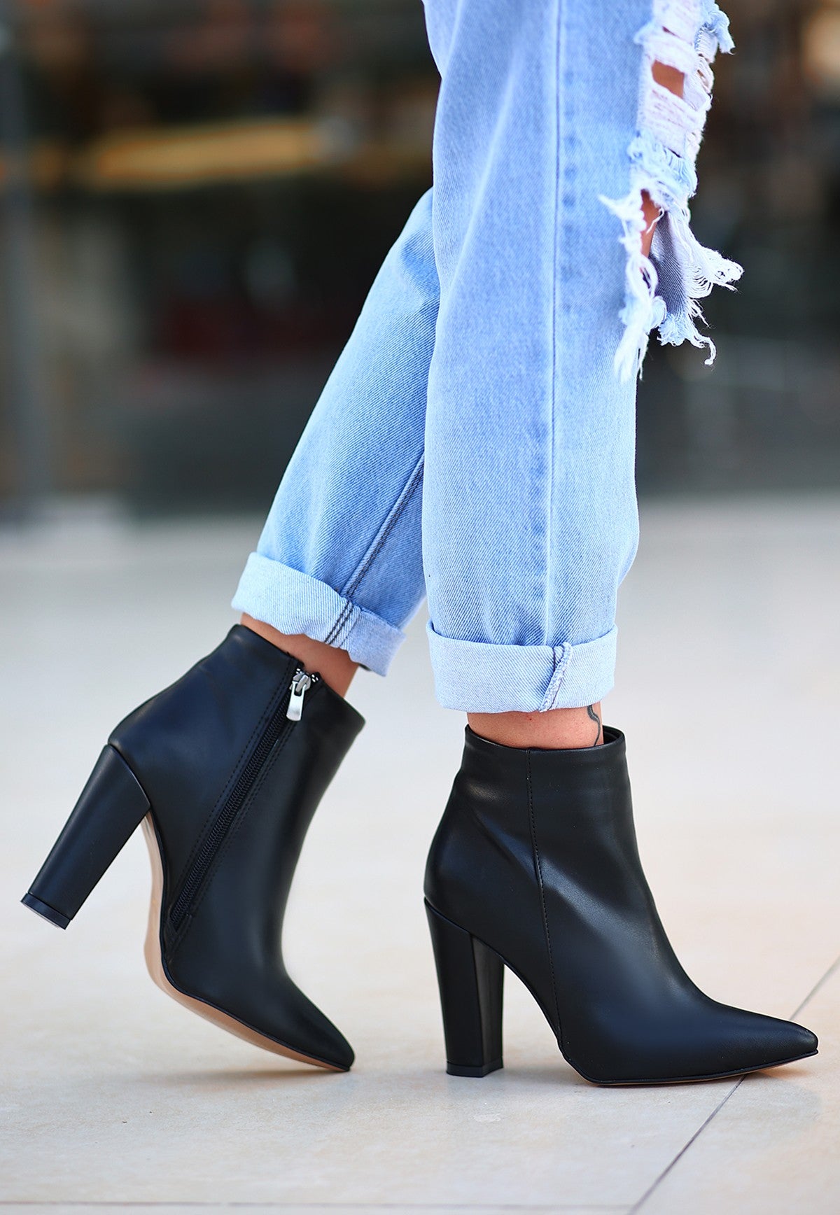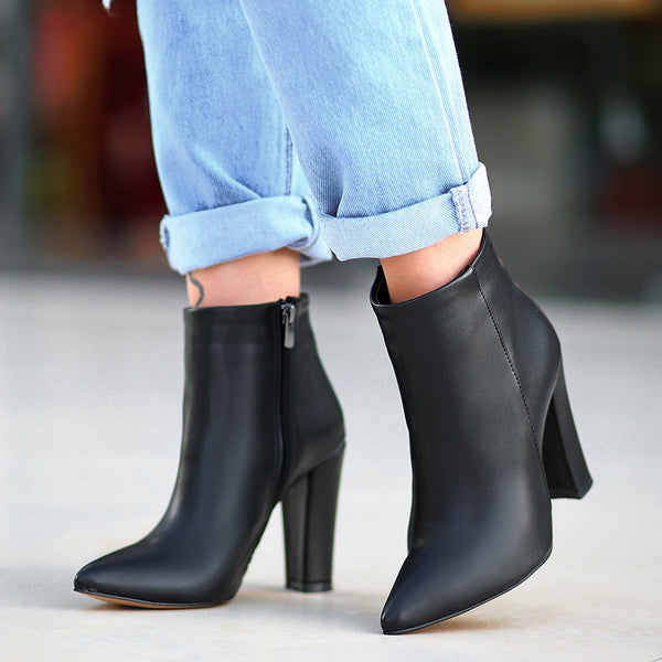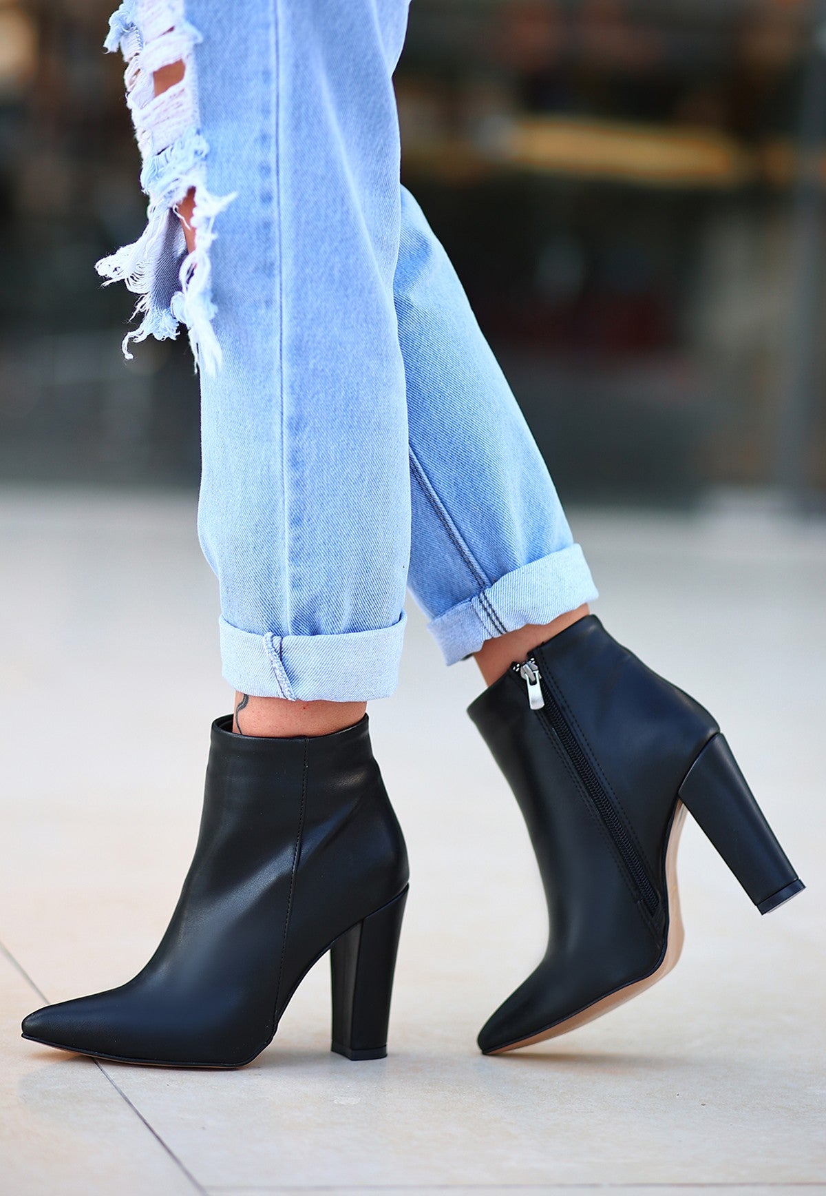 Scarpax Loora Siyah Cilt Topuklu Bot