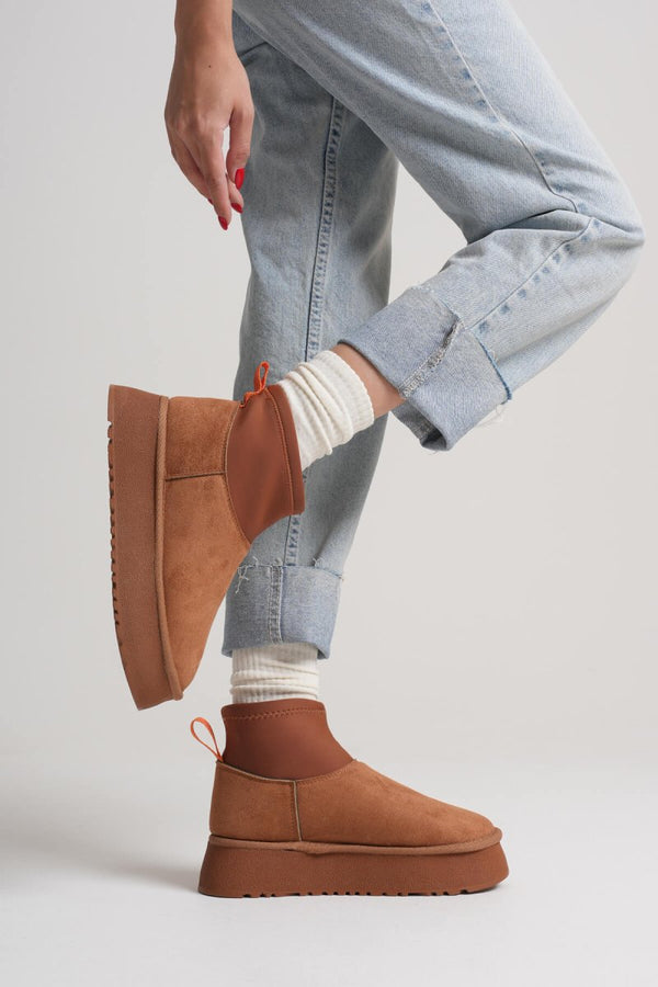 Scarpax Nadia Kadın Taba Kışlık İçi Kürklü Kalın Taban Bot, kış aylarının vazgeçilmezi olarak şıklığınızı ve konforunuzu korurken, soğuk havalarda ayaklarınızı sıcak tutar.