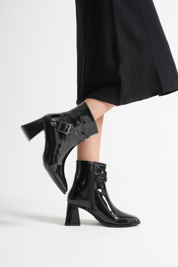 Scarpax Vera Kadın Siyah Rugan Topuklu Bot