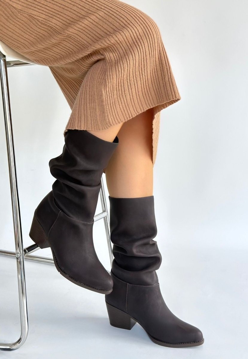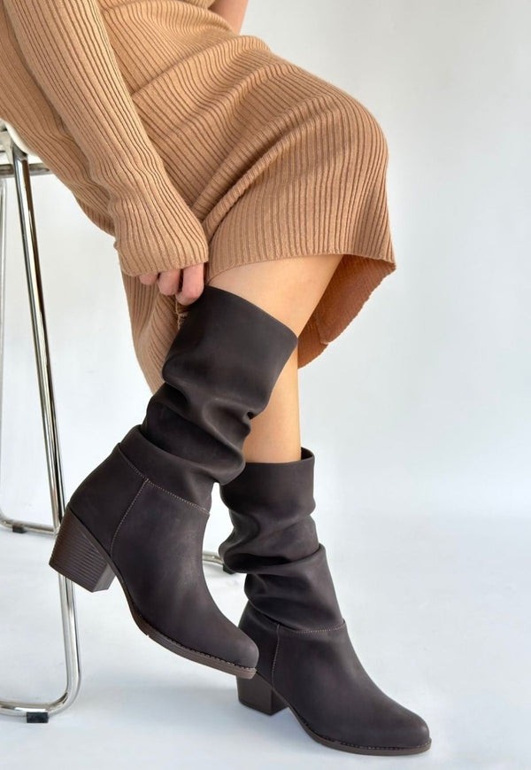 Scarpax Yior Kahverengi Nubuk Topuklu Bot