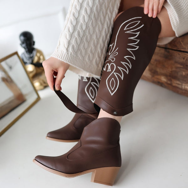 Scarpax Jilla Kahverengi Cilt Topuklu Bot & Çizme, 5 cm Topuk, Çıkmalı Detay