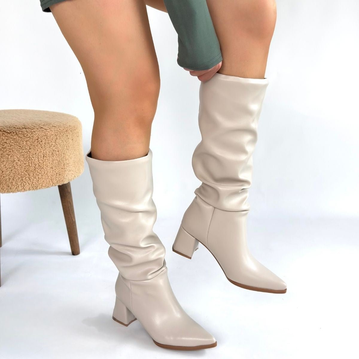 Bu diz altı körüklü çizmeler, farklı stillerle bütünleşerek her yere kolayca uyum sağlar. Topuklu yapısı sayesinde hem boyunuzu artırır hem de stilinize sofistike bir dokunuş katar. 6 cm yüksekliğindeki topuğu, sizi yormadan gün boyunca rahatça hareket etmenizi sağlar.