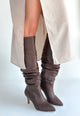 Bu topuklu diz altı çizmeler, sade ve şık tasarımlarıyla dikkat çeker. 2 cm topuk yüksekliği, sizi hem rahat tutar hem de zarif bir siluet oluşturur. Çizmenin uzunluğu ise 26 cm olup, zamansız bir görünüm sağlar. Üstün kaliteli suet malzemeden üretilmesi, hem stil açısından hem de dayanıklılık bakımından büyük bir avantaj sunar.