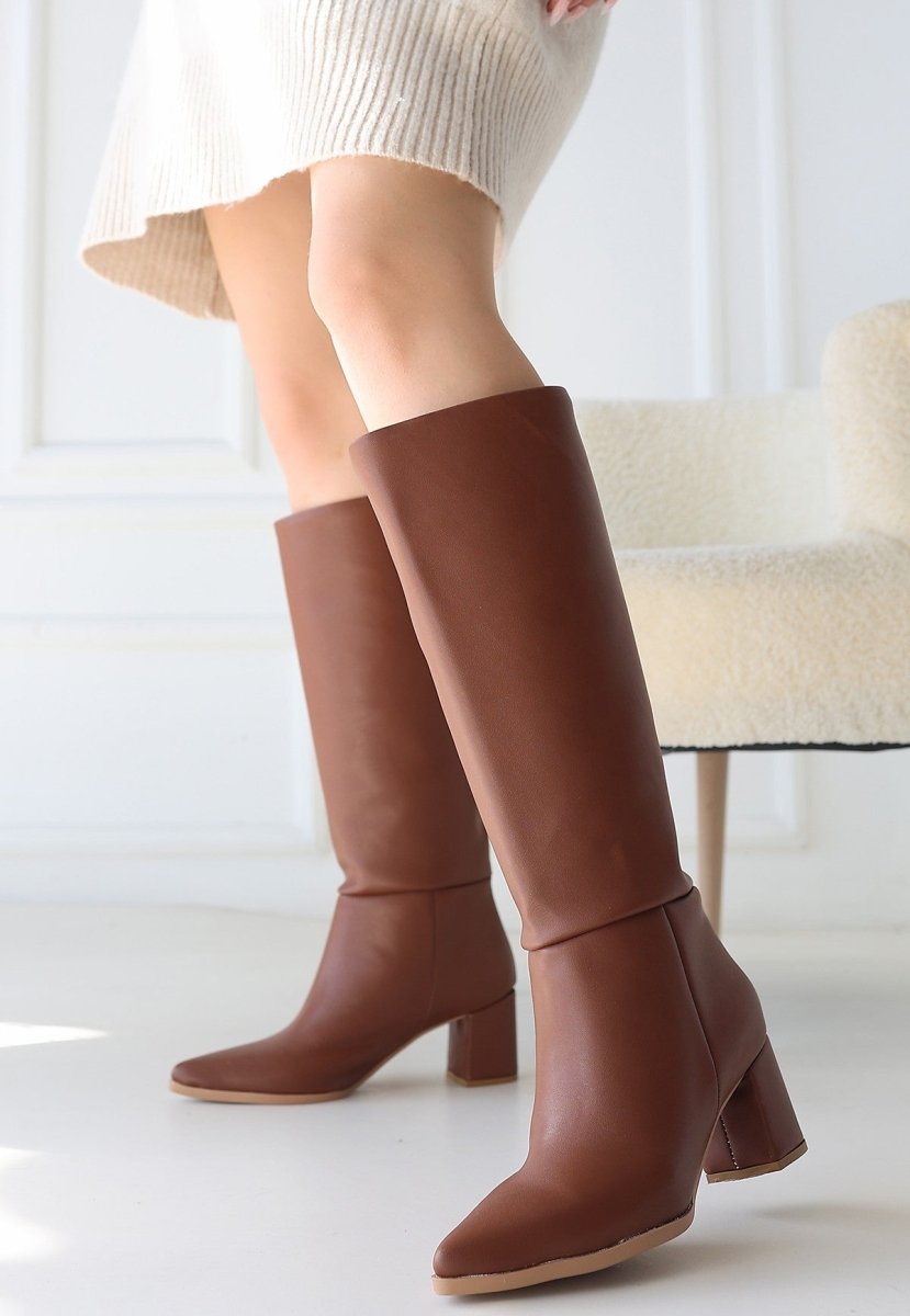 Scarpax Roksa Taba Cilt Topuklu Çizme
