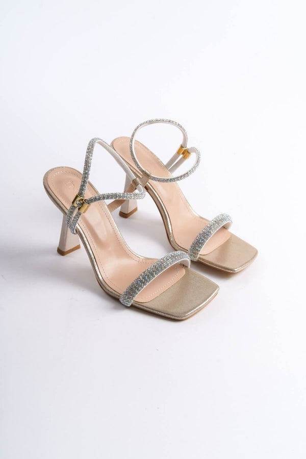 SCARPAX Destina Altın Taşlı Kadın Topuklu Sandalet - Şık ve Zarif Tasarım