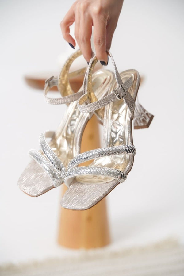 Scarpax Kendy Altın Taşlı Kadın Topuklu Sandalet - Şık ve Zarif Tasarım