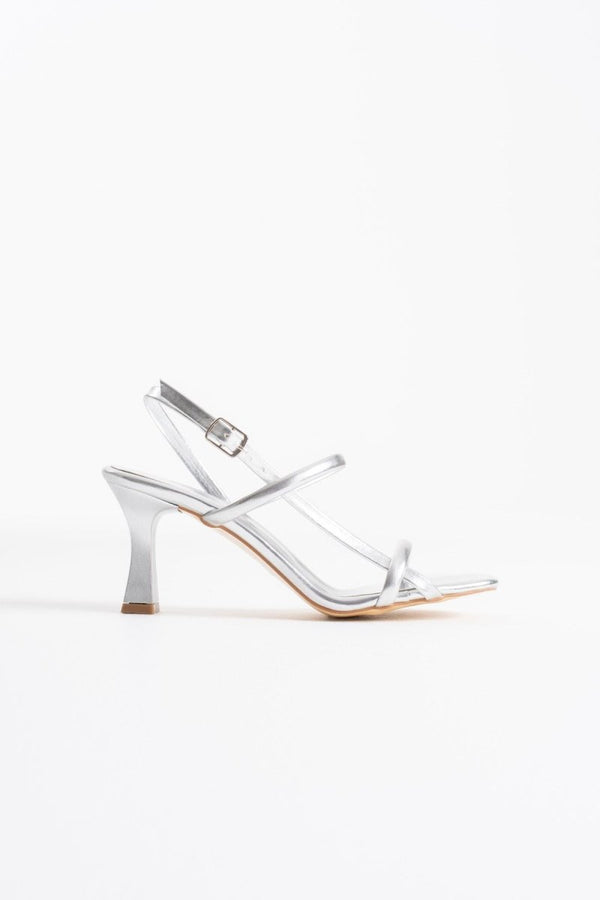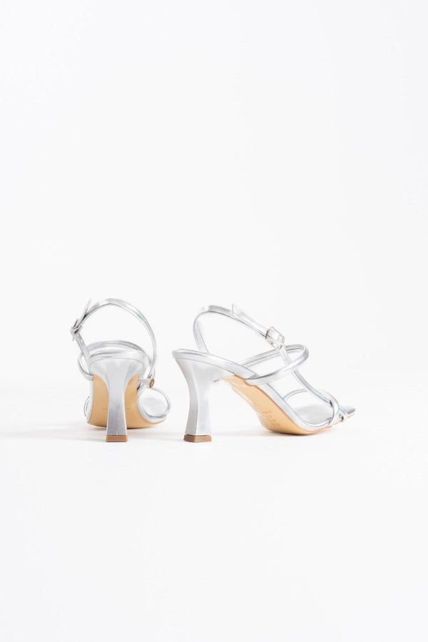 Monya Kadın Gümüş Topuklu Sandalet, günlük yaşamda veya özel anlarda şıklığınızı tamamlayacak bir parçadır. Narin arka detayı, ayak bileğinizi zarif bir şekilde sararak, ekstra destek sağlar. Topuk boyu ve tipi sayesinde hem şık hem de rahat bir yürüyüş imkanı sunuyor.