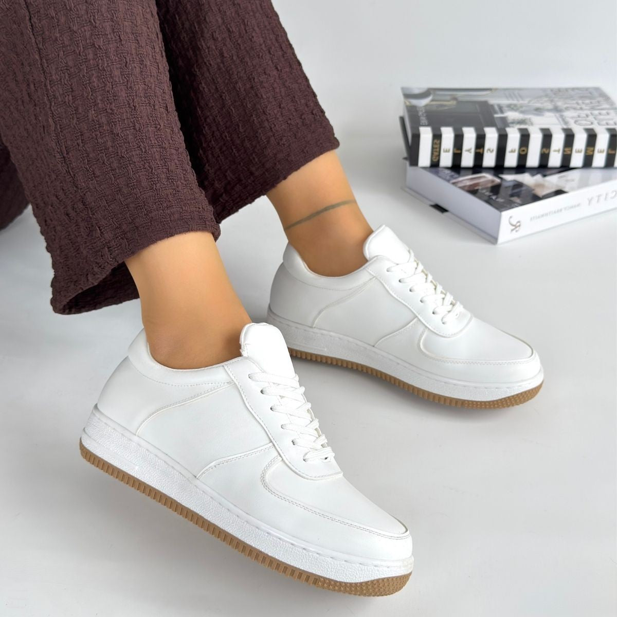 Scarpax Ceyyan Beyaz Bağcıklı Spor Ayakkabı - 2 Cm Topuk, Termo Taban, Pad'li İç Taban