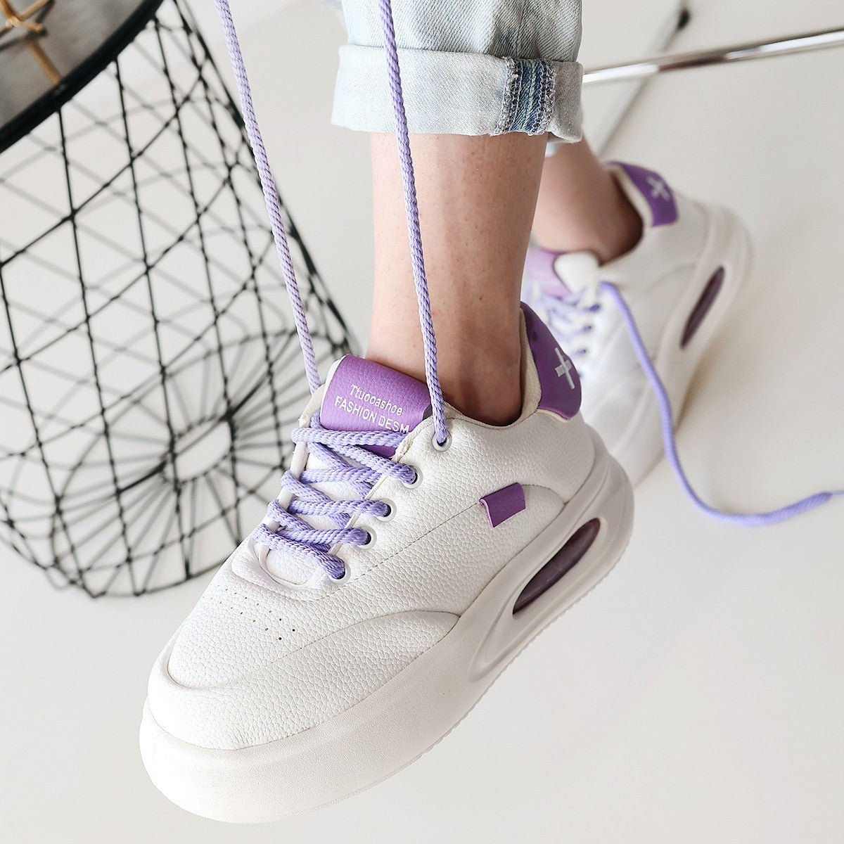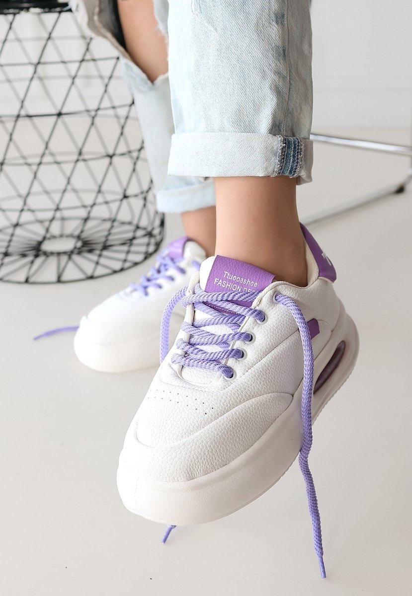 Scarpax Beyaz Cilt Lila Detaylı Bağcıklı Spor Ayakkabı - Ortopedik Topuk Dikenine Karşı Özel Üretim