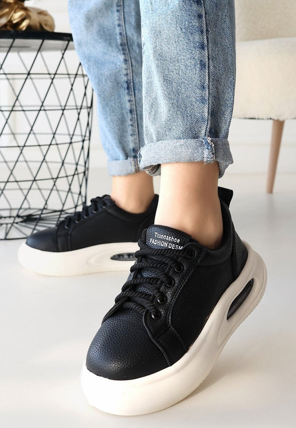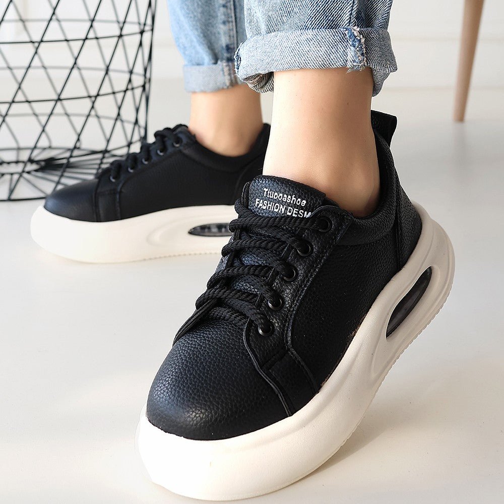 Scarpax Chris Siyah Cilt Spor Ayakkabı - Ortapedik Topuk, 4 Cm Yükseklik, Poli Taban
