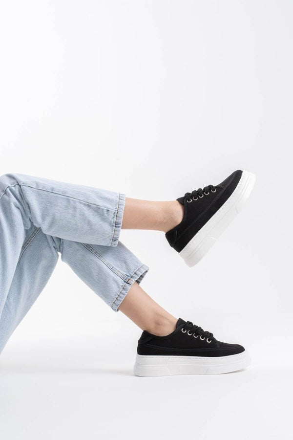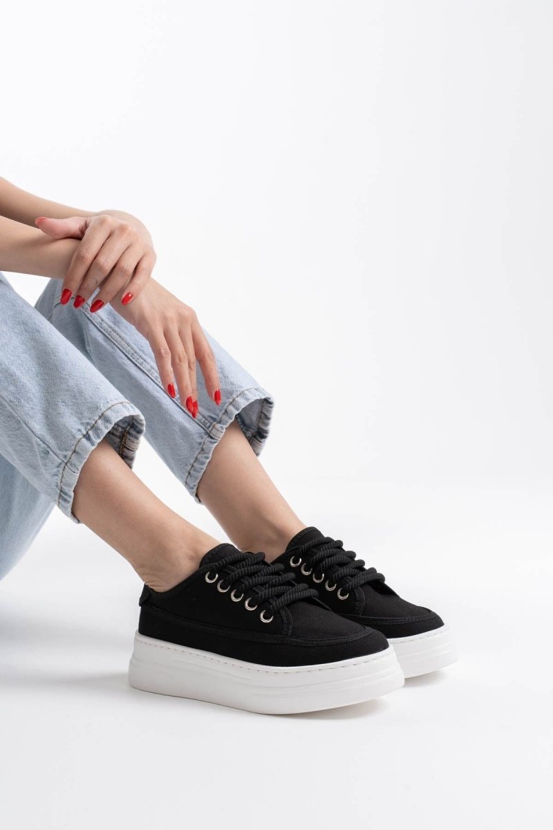 SCARPAX Glow Kadın Siyah Keten Casual Spor Ayakkabı - Rahat ve Şık Tasarım