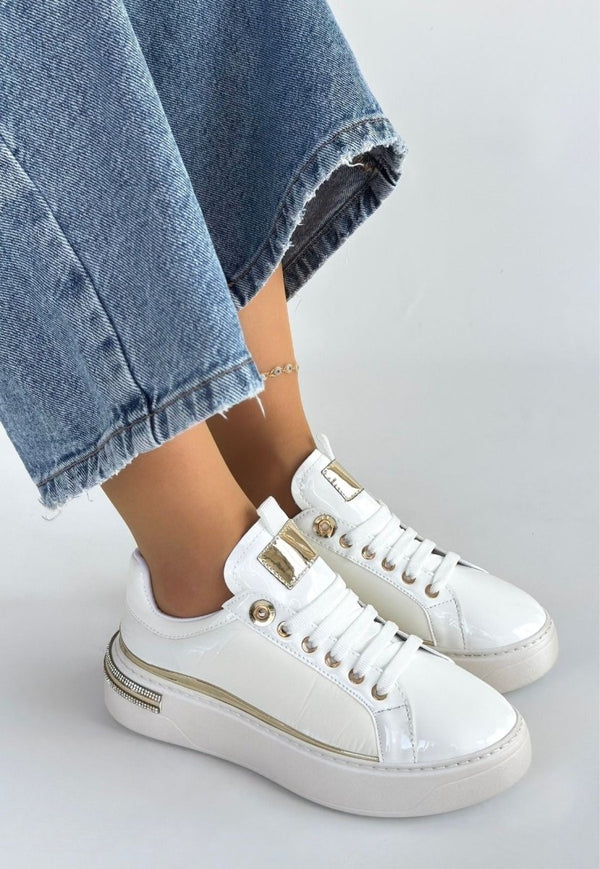 Scarpax Hley Beyaz Rugan Paraşüt Detaylı Bağcıklı Spor Ayakkabı