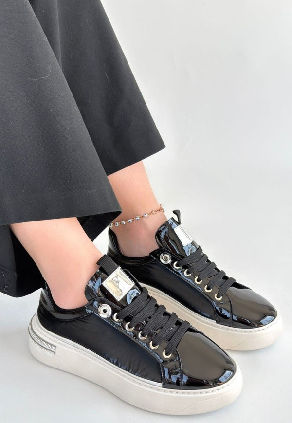 Scarpax Hley Siyah Bağcıklı Ortapedik Spor Ayakkabı, şıklığı ve konforu bir araya getiriyor. Spor yaparken veya günlük aktivitelerinizde tarzınızı korumanıza olanak tanır.