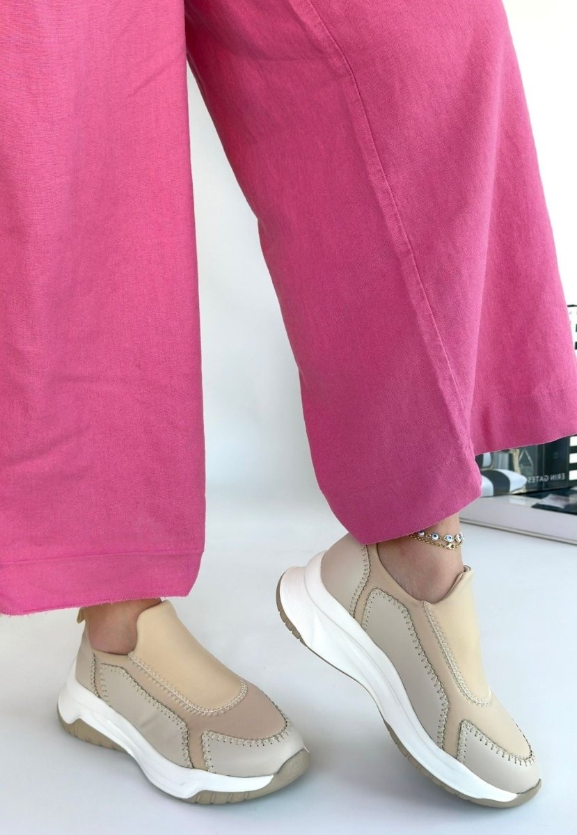 Scarpax Kendy Bej Cilt Spor Ayakkabı - 4 cm Ortapedik Topuk, Poli Taban, Standart Kalıp