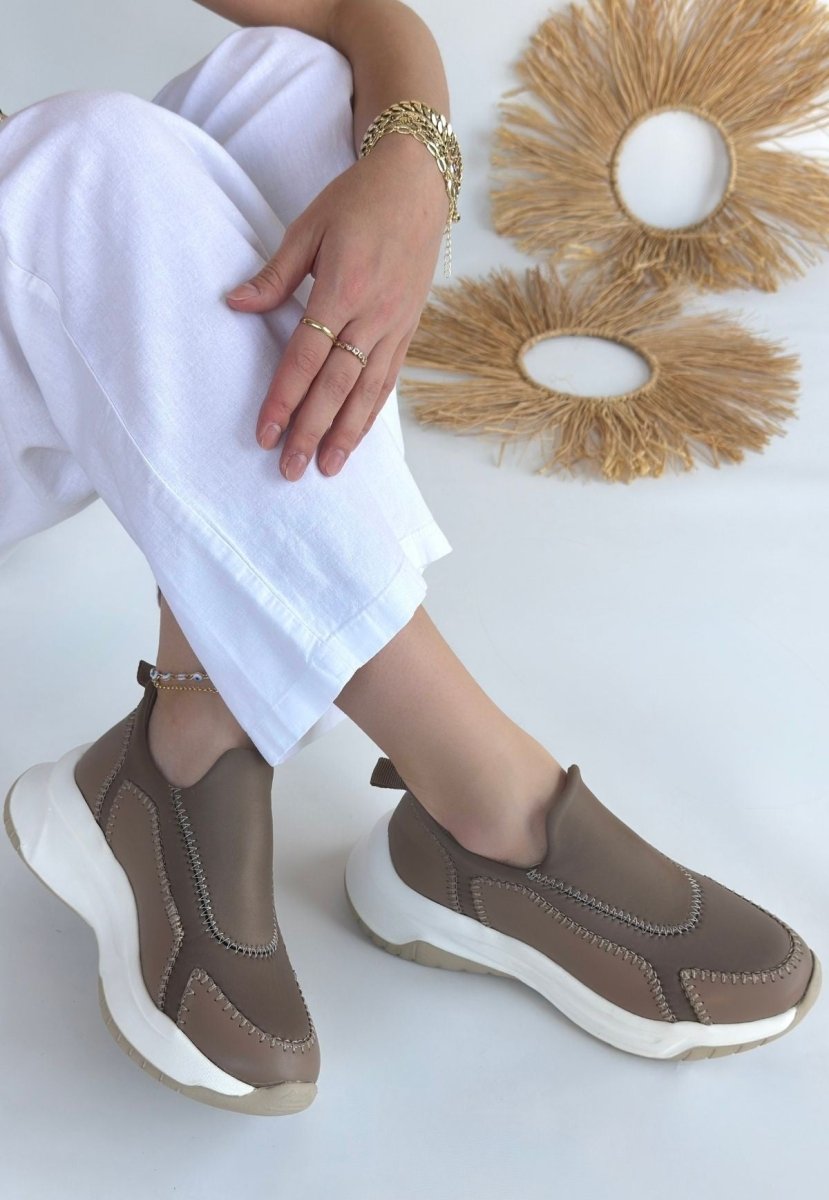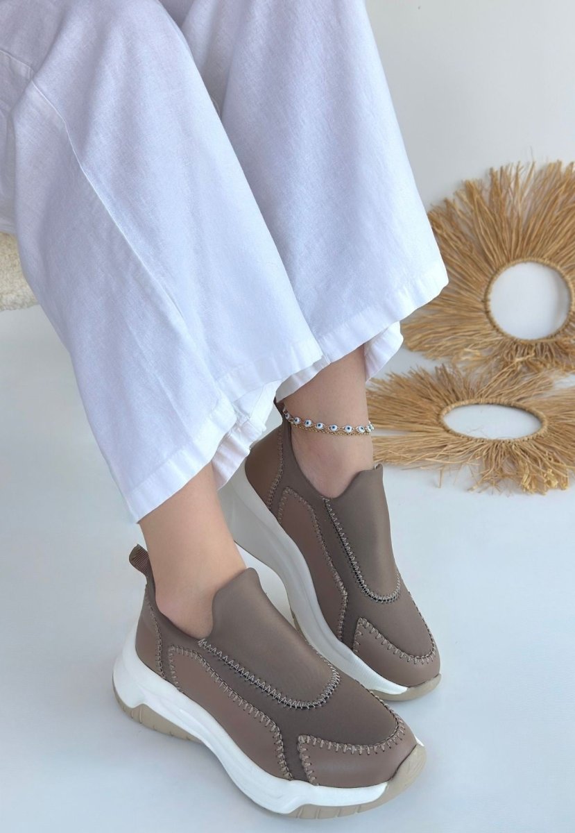 Scarpax Kendy Vizon Cilt Spor Ayakkabı - 4 cm Ortapedik Topuk, Özel İç Tabanlı