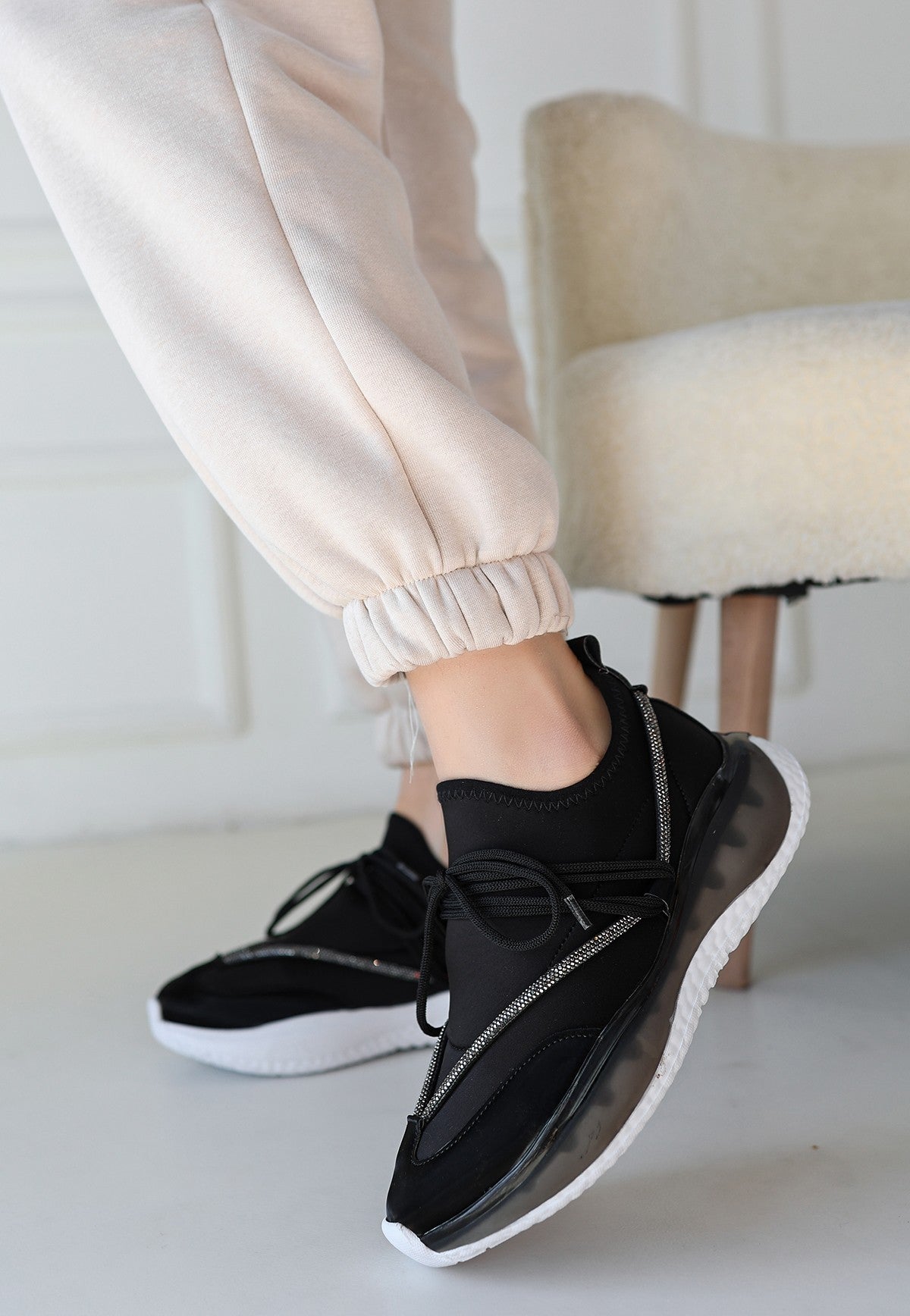 Scarpax Liney Siyah Rugan Spor Ayakkabı - Ortapedik, 2 Cm Topuk, Standart Kalıp