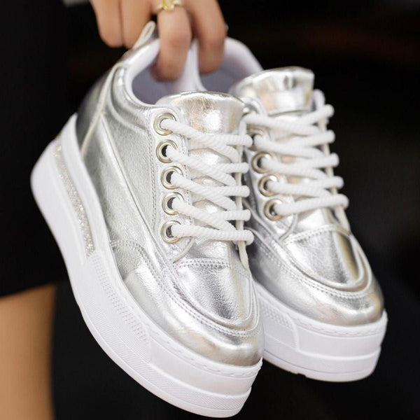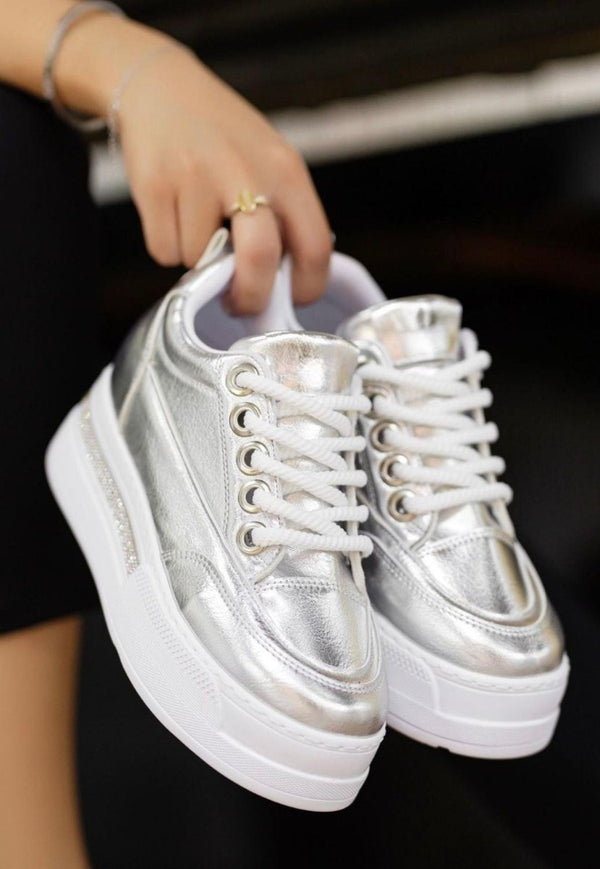 Scarpax Lulu Gümüş Rugan Bağcıklı Spor Ayakkabı