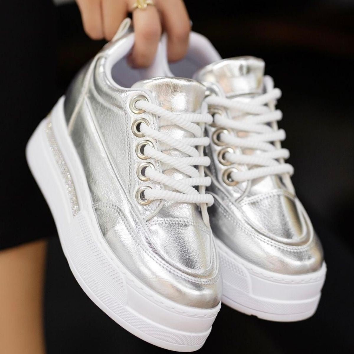 Bu ayakkabıyı hemen sipariş vererek, gündelik tarzınıza şıklık ekleyebilirsiniz. Scarpax Lulu Gümüş Spor Ayakkabı sadece bir spor ayakkabı değil; aynı zamanda bir yaşam tarzıdır!