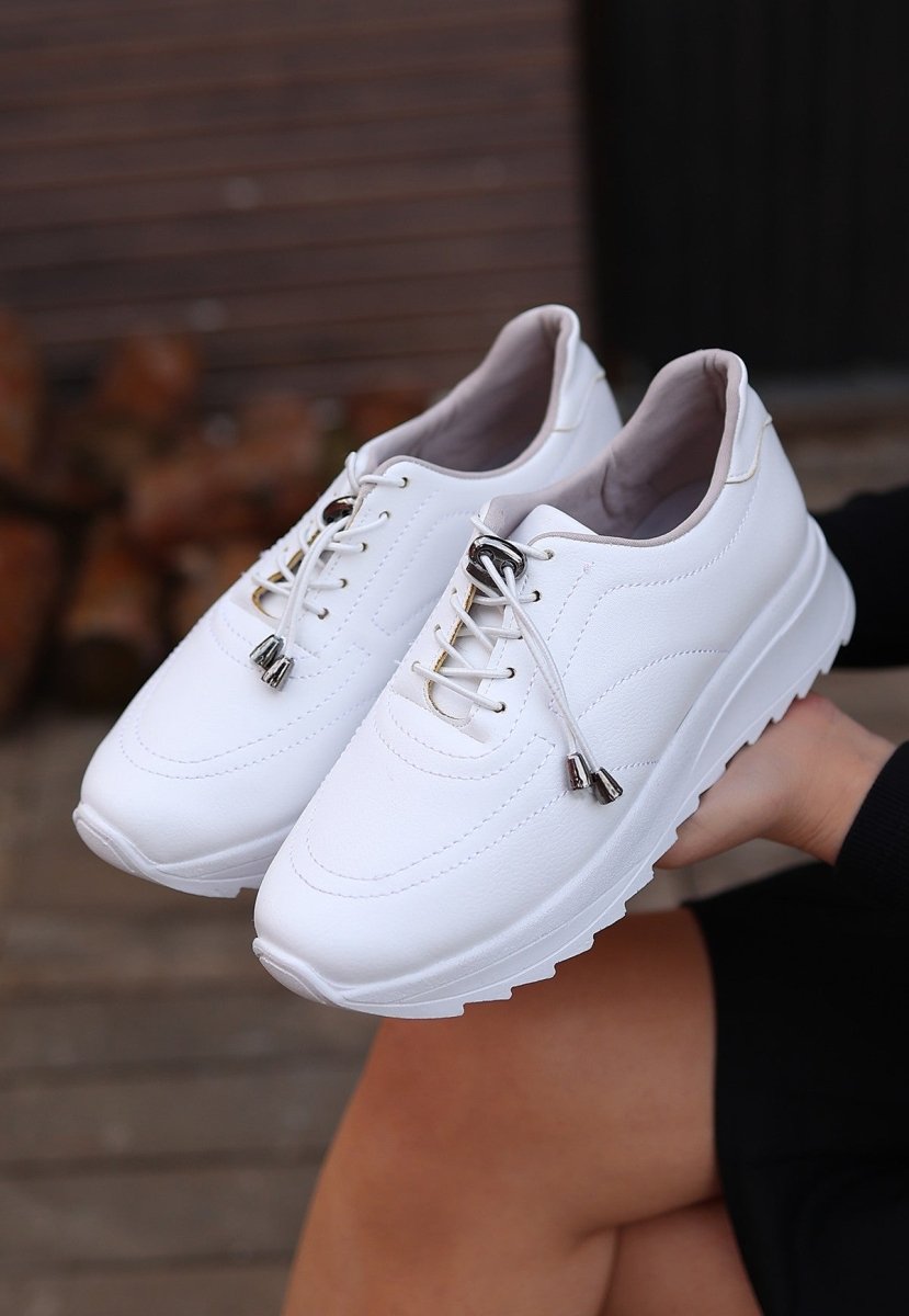 Scarpax Romy Beyaz Cilt Bağcıklı Spor Ayakkabı