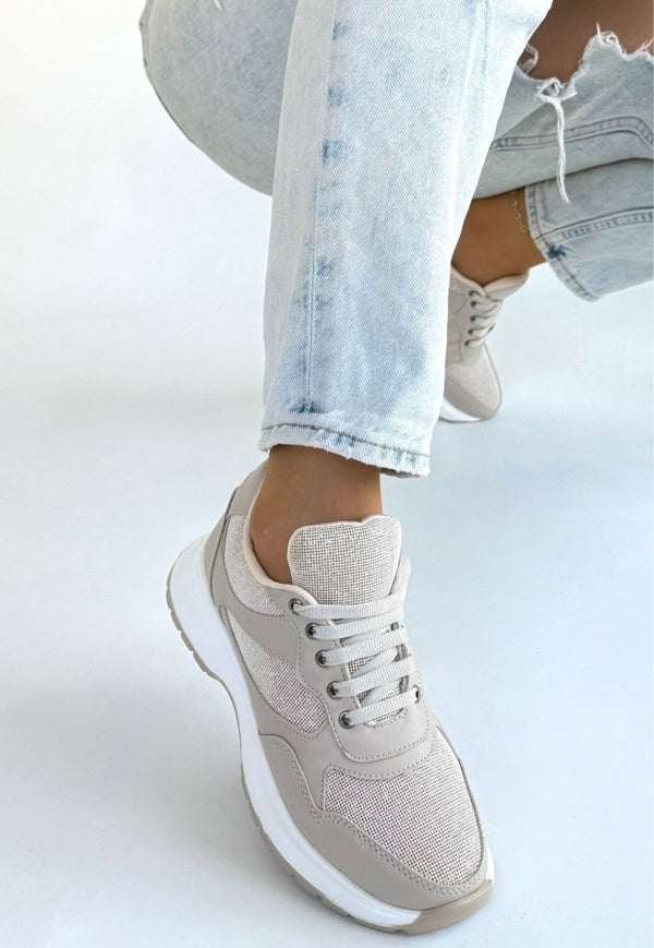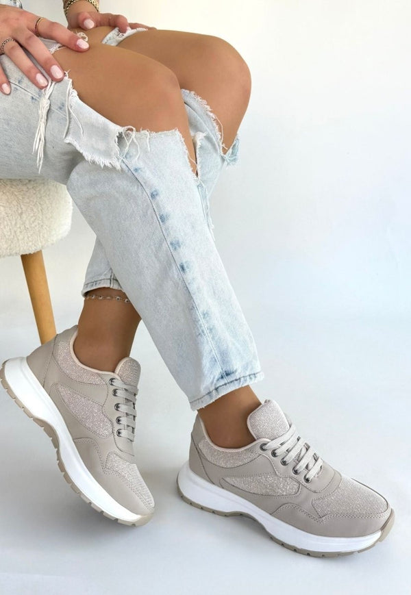 Scarpax Slar Bej Cilt Bağcıklı Spor Ayakkabı