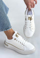 Bu spor ayakkabının dış yüzeyi, kaliteli beyaz deri ile tasarlandığı için hem şık hem de dayanıklıdır. İçinde yer alan yastıklama özellikli taban, her adımda ekstra konfor sağlar; böylece ayaklarınız rahat hisseder. Kaymaz faylon tabanı, zemin üzerinde güvenli adımlar atmanızı garanti eder.