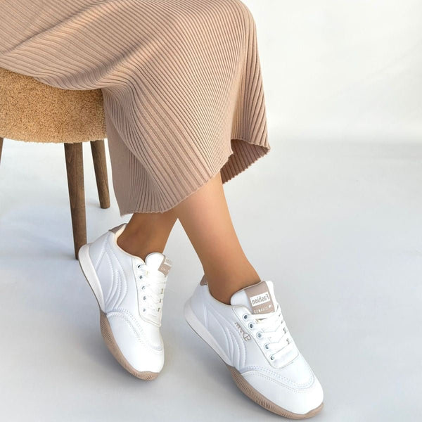 Scarpax Tawen Beyaz Cilt Bağcıklı Spor Ayakkabı