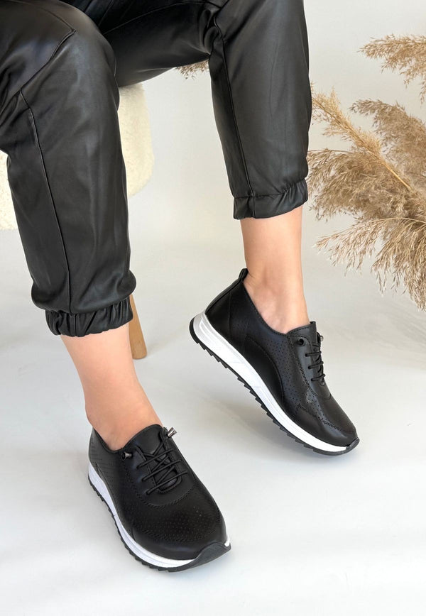 Scarpax Tone Siyah Cilt Bağcıklı Spor Ayakkabı