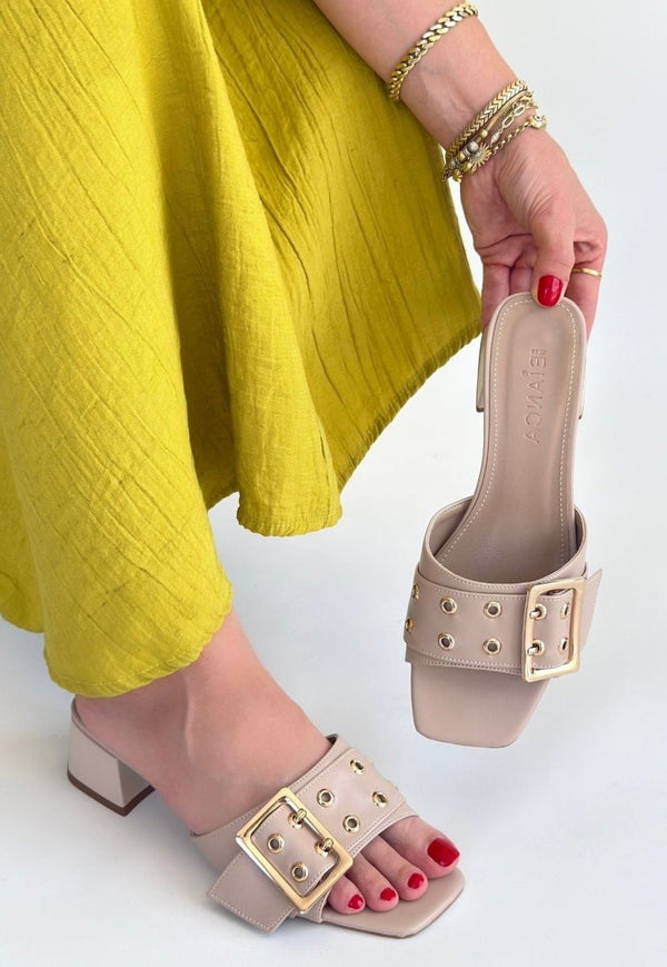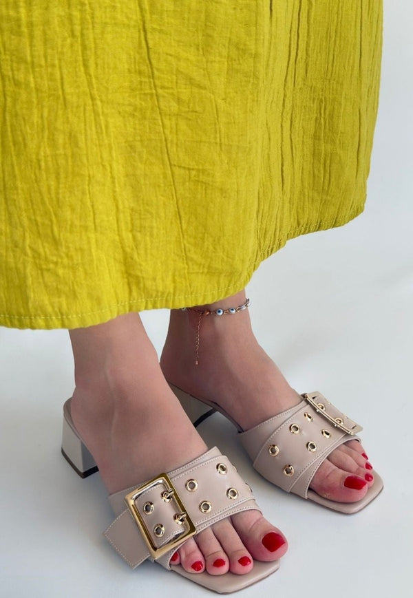 Scarpax Bej Cilt Topuklu Terlik - 4 Cm Topuk Yüksekliği ile Şık ve Rahat Tasarım