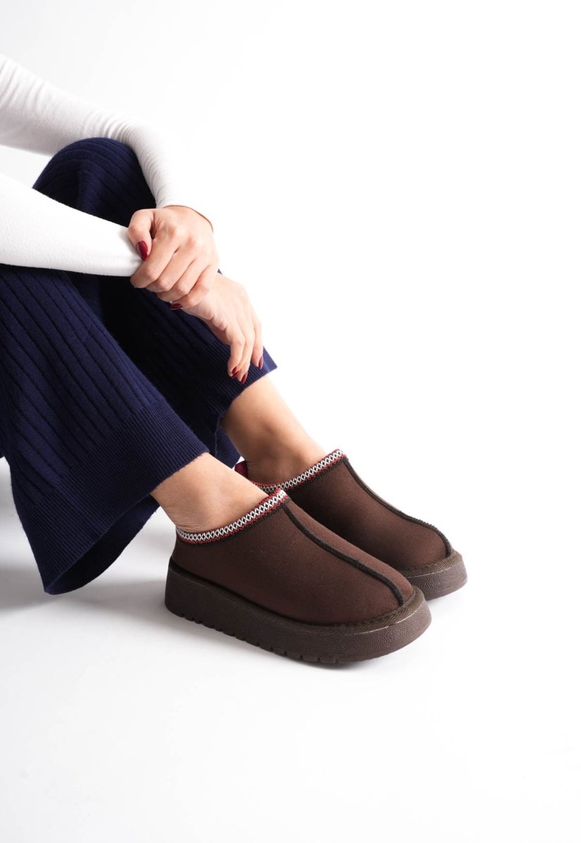 Scarpax Elsa Kadın Acı Kahve Kışlık Kürklü Terlik