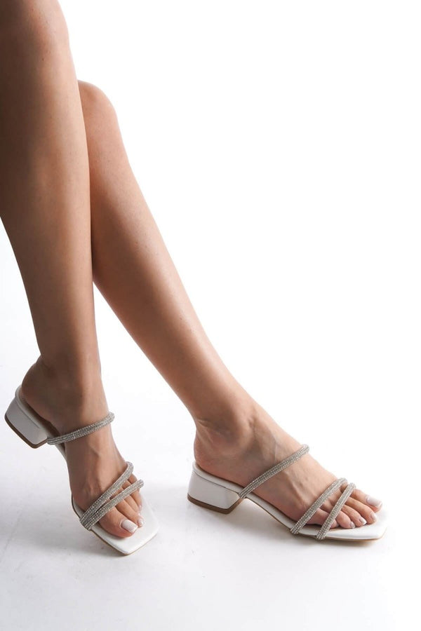 Scarpax Emma Kadın Kalın Topuklu Beyaz Terlik