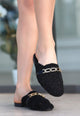 Scarpax Siyah Nubuk Taşlı Terlik - Kemer Detaylı 3 cm Topuklu, Standard Kalıp