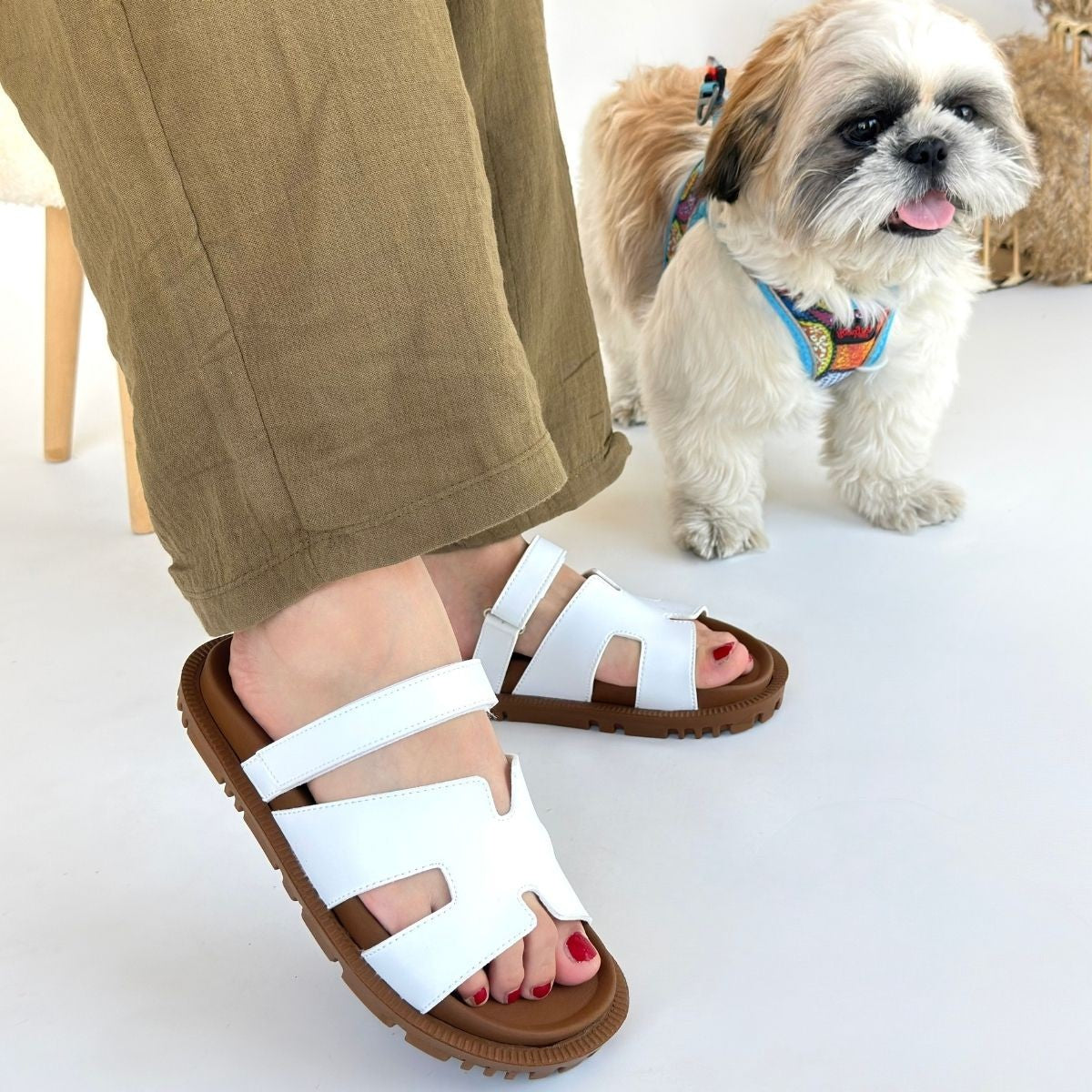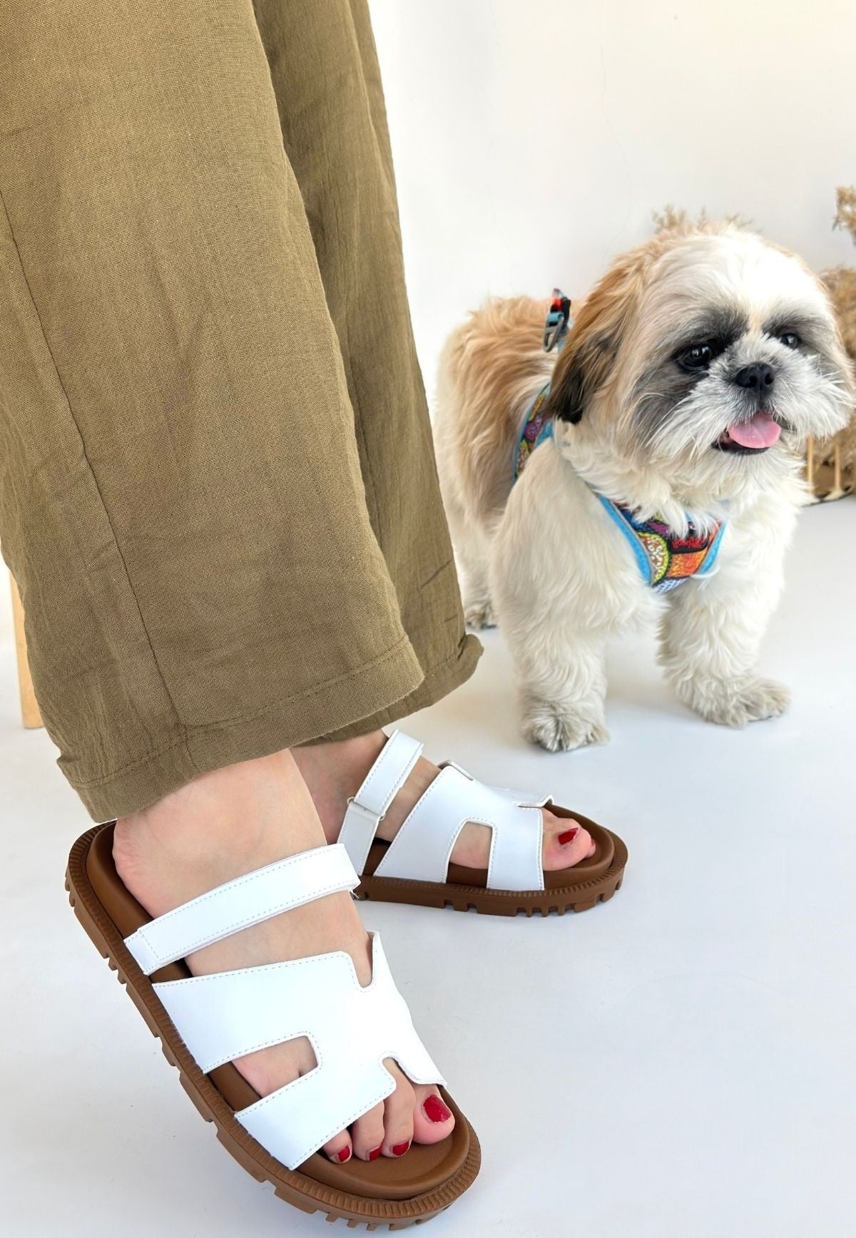 Scarpax Kooni Beyaz Cilt Kemerli Terlik, hemen şimdi koleksiyonunuza katılmak için bekliyor! Hem şıklığı hem de konforuyla size etki edecek” alacak bu terlik, hem plajda hem de sokaklarda saklanabilecek giyilebilecek bir parça olacak.